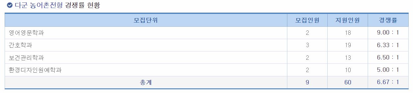 다군 농어촌전형 경쟁률 현황
