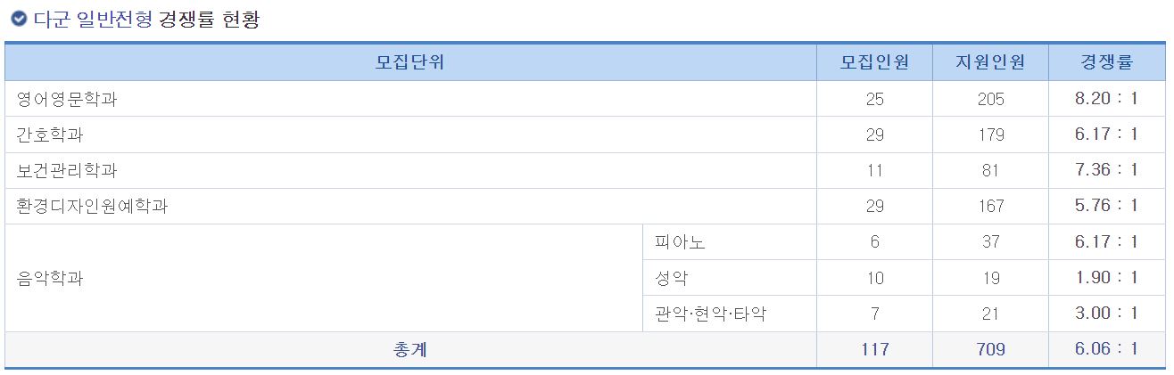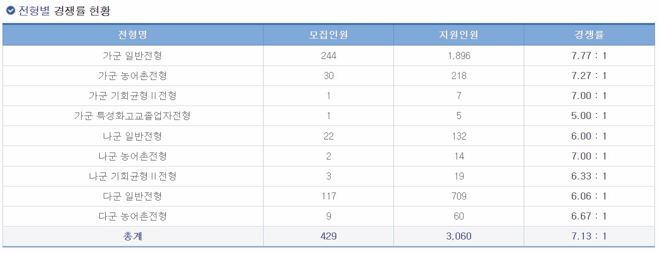 다군 일반전형 경쟁률 현황
