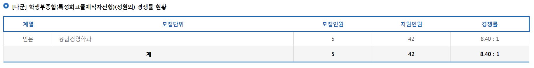 [나군] 학생부종합(특성화고졸재직자전형)(정원외) 경쟁률 현황
