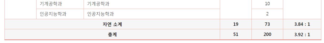 나군 수능(농어촌학생전형)은 인문, 인문자연과 자연을 각각 통합하여 모집했으며, 인문, 인문자연의 경쟁률은 3.97:1, 자연은 3.84:1 이었습니다.