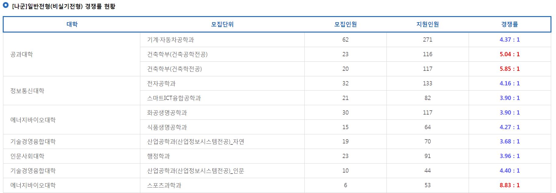 [나군]일반전형(비실기전형) 경쟁률 현황