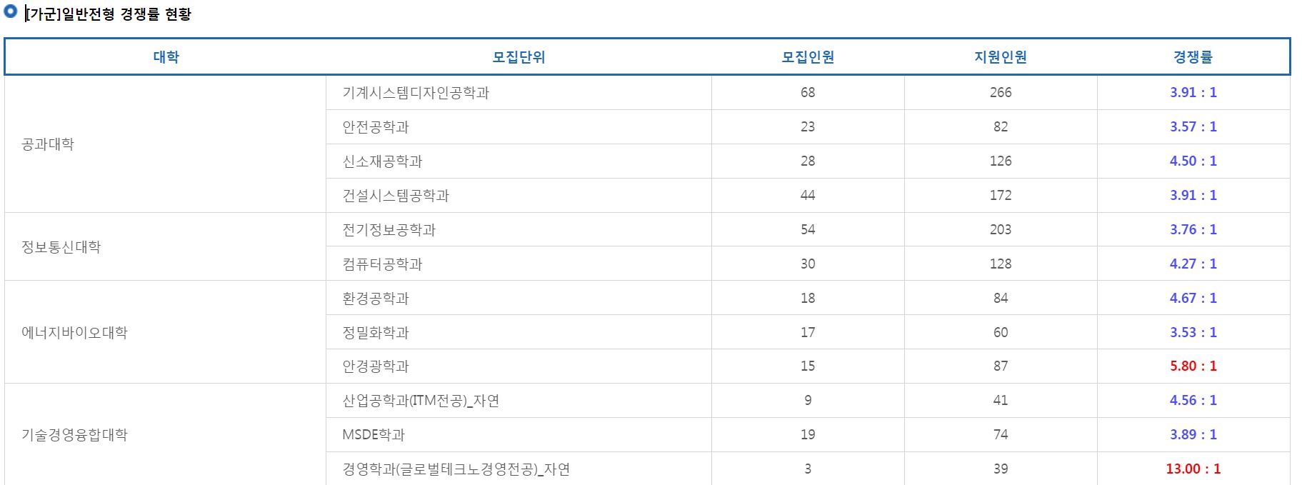 [가군]일반전형 경쟁률 현황