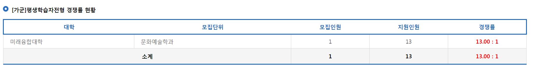 [가군]평생학습자전형 경쟁률 현황