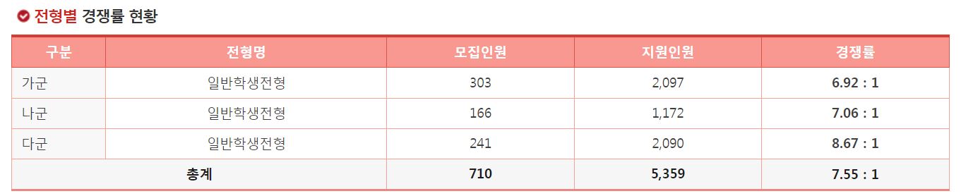 가군 일반학생전형 경쟁률 현황