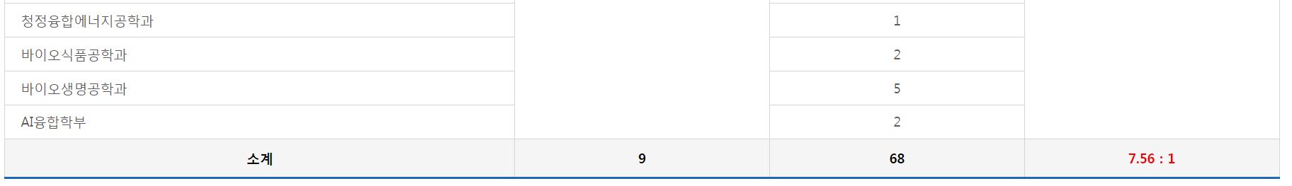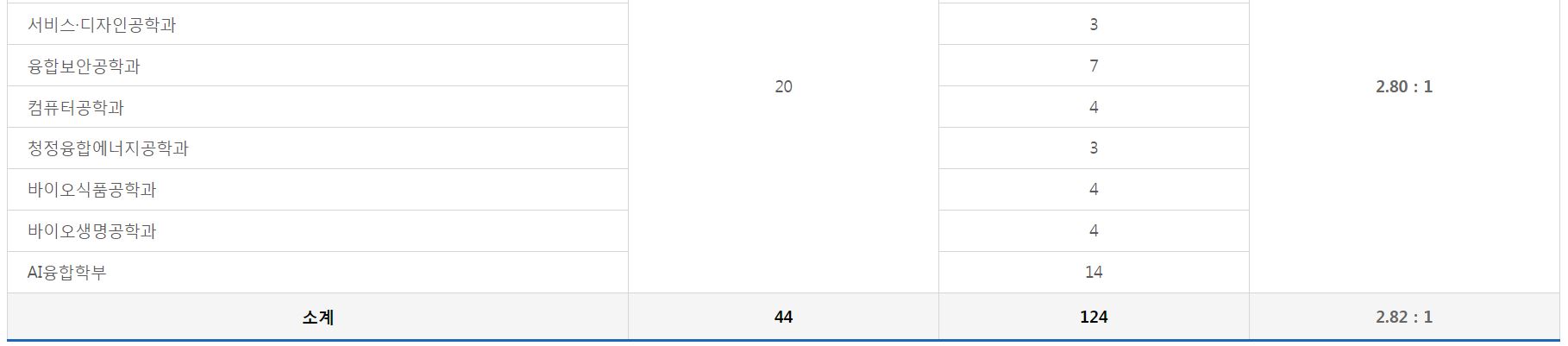 가군 특성화고교출신자전형(정원 외) 전형에서는 바이오헬스융합학부의 신입생을 모집했으며, 경쟁률은 4.33:1 이었습니다.