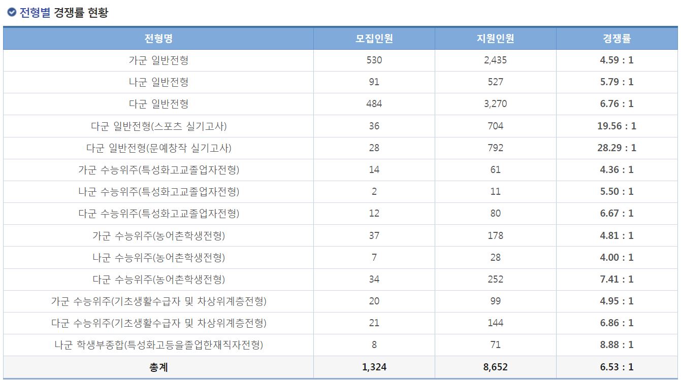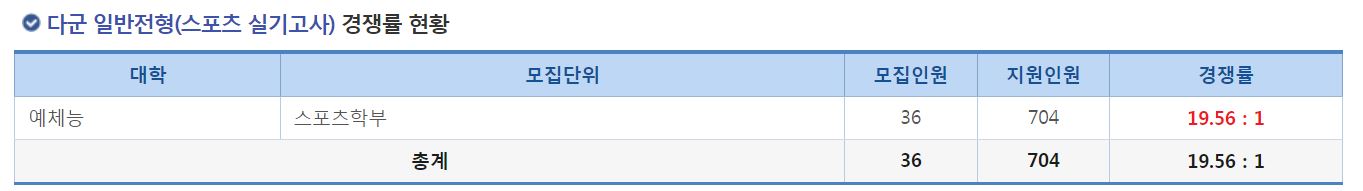 다군 일반전형(스포츠 실기고사) 경쟁률 현황