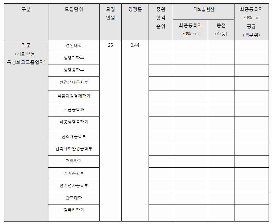 원래 3개년 정보를 올리지만, 고려대학교는 작년 정보밖에 없어 작년 정보만 올립니다.