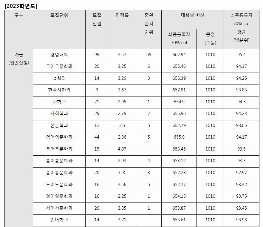 | [4년제/세종특별자치시] 2024학년도 정시 대비 고려대학교 세종캠퍼스 작년(2023년) 정시 등급 (0) | 2023.12.23 |
