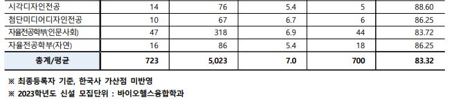 나군 : 스포츠운동과학과, 현대미술전공, 시각디자인전공, 자율전공학부(인문사회계열), 자율전공학부(자연계열)