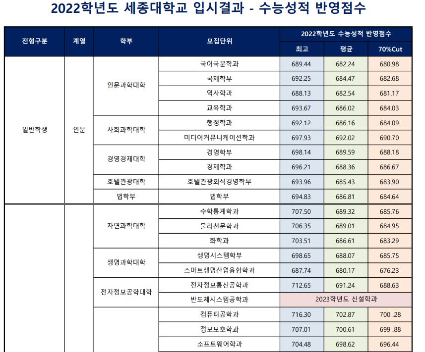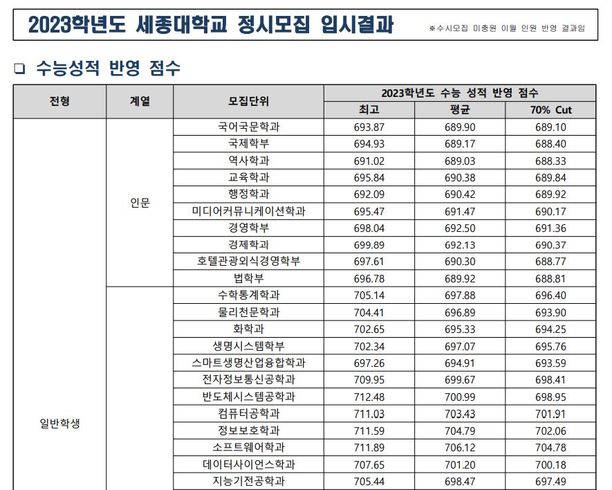 오늘은 세종대학교의 3개년 정시 등급에 대해 포스팅해보도록 하겠습니다.