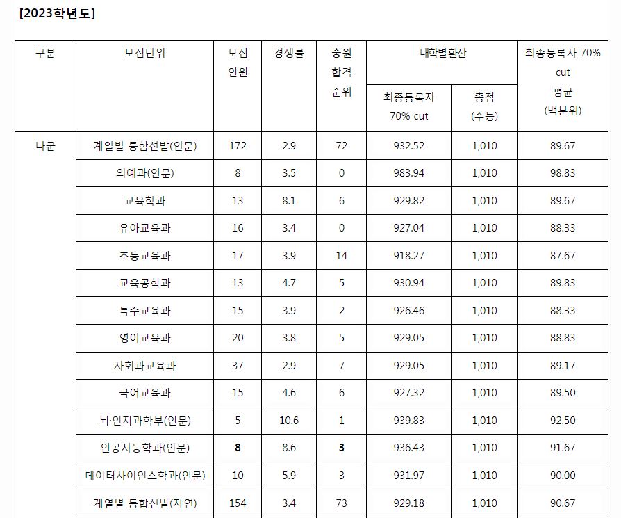 원래 3개년의 정시 등급을 올리지만, 이화여자대학교에서는 작년 정시 등급만을 공개하고 있어 2023학년도 정시 등급에 대해서만 포스팅하도록 하겠습니다.
