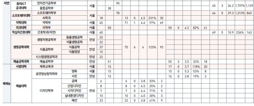 다군 : 경영학부(경영학), 간호학과(인문), 창의ICT공과대학, 소프트웨어학부, 간호학과(자연), 경영경제대학