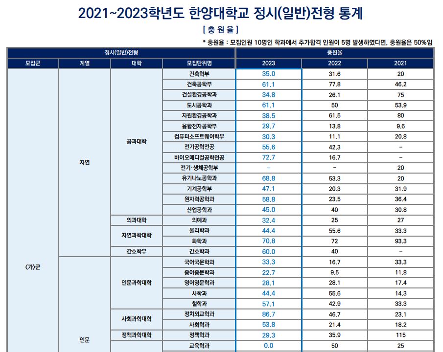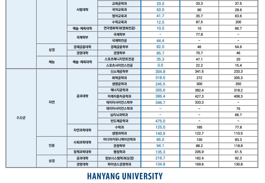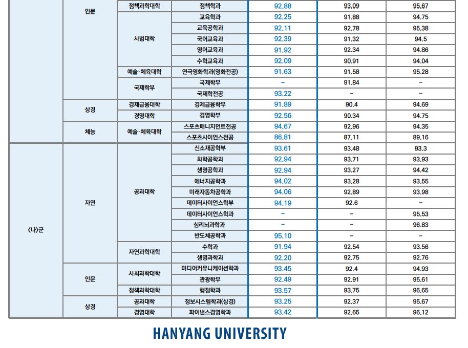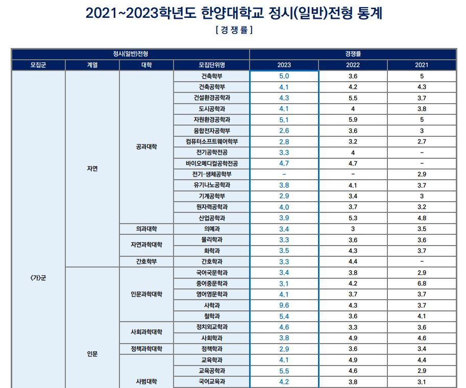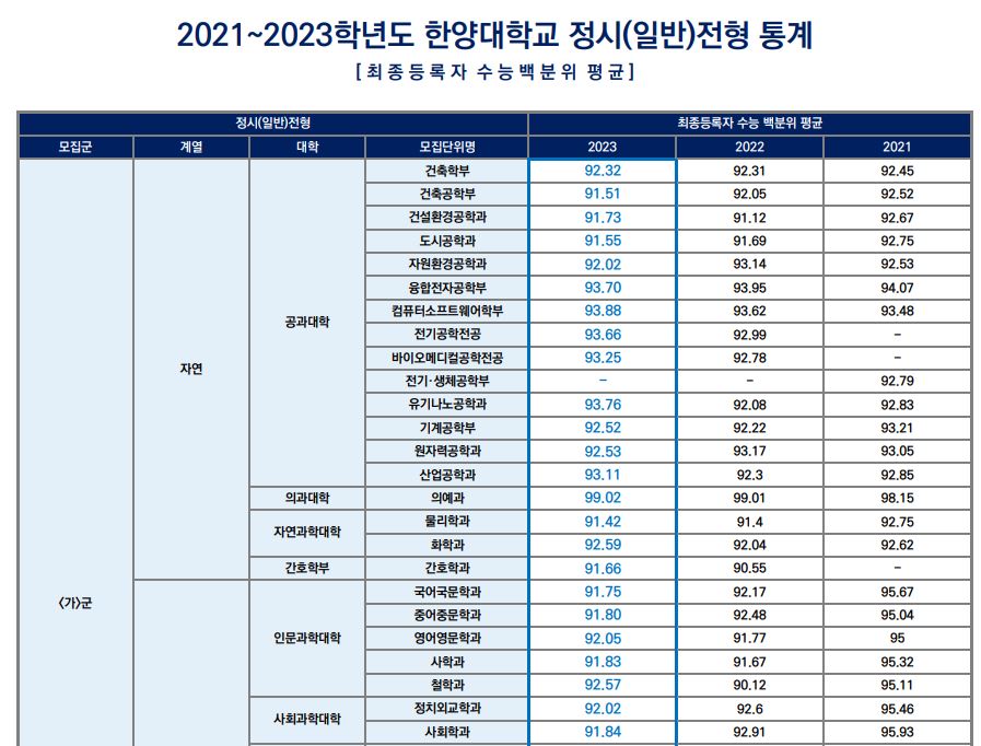 오늘은 한양대학교의 3개년 정시 등급에 대해 포스팅해보도록 하겠습니다.