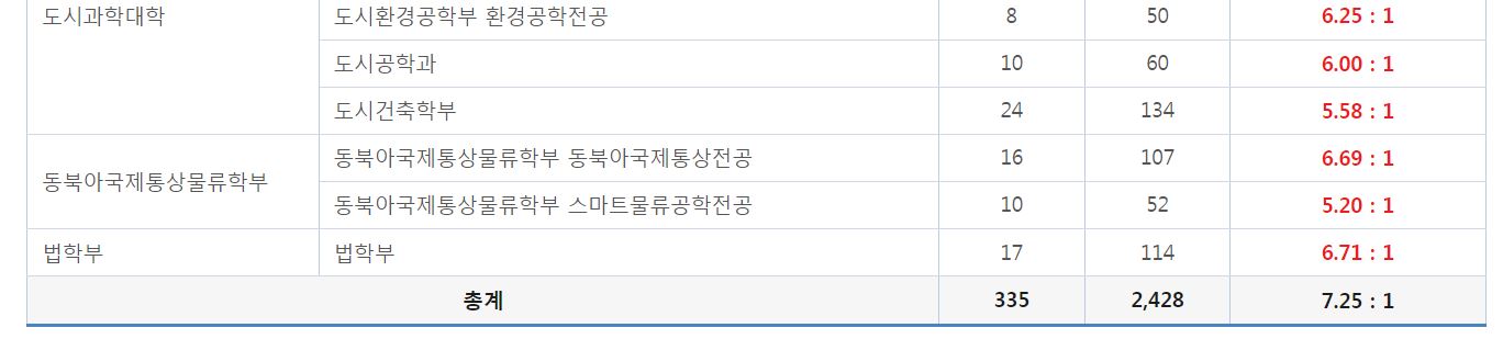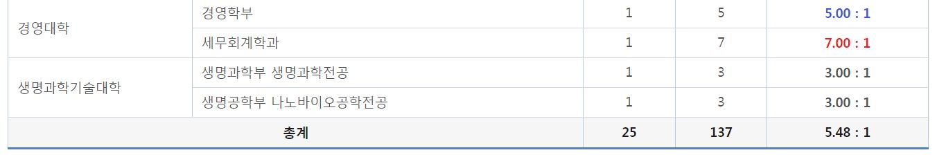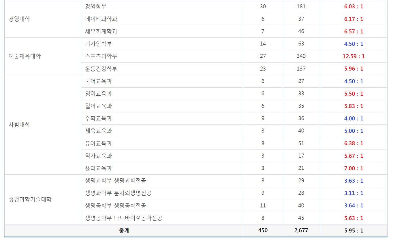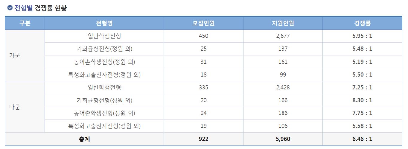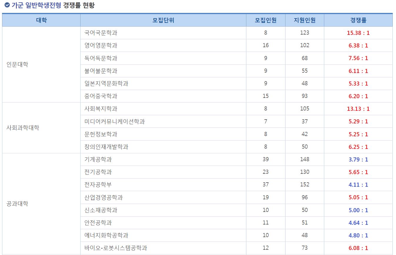 가군 일반학생전형 경쟁률 현황