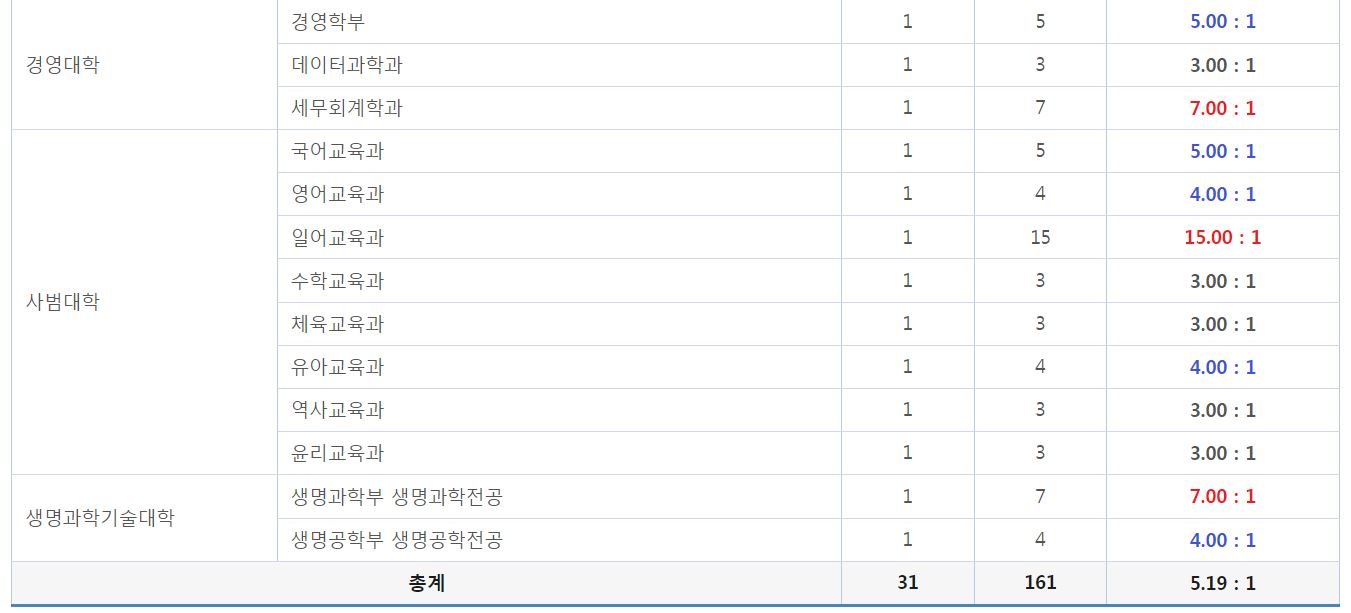 [4년제/광주광역시/전라남도 여수시] 2024학년도 전남대학교 최종 정시 경쟁률 (0) | 2024.02.20 |