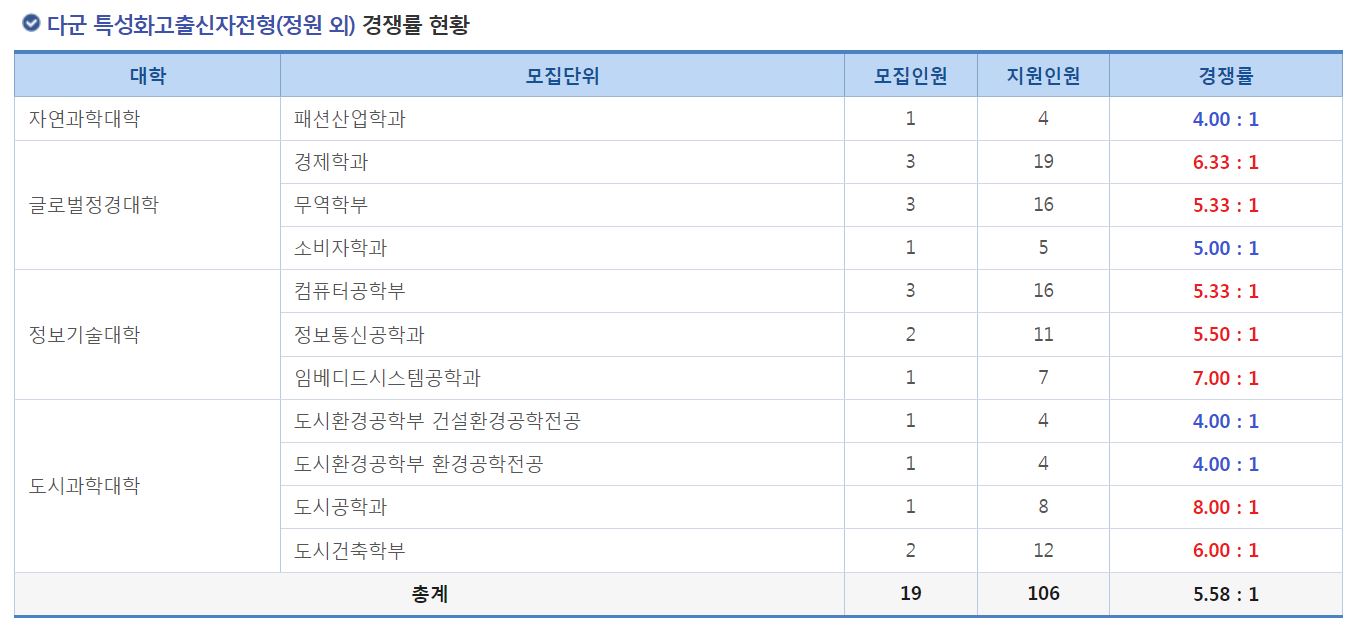 다군 특성화고출신자전형(정원 외) 경쟁률 현황