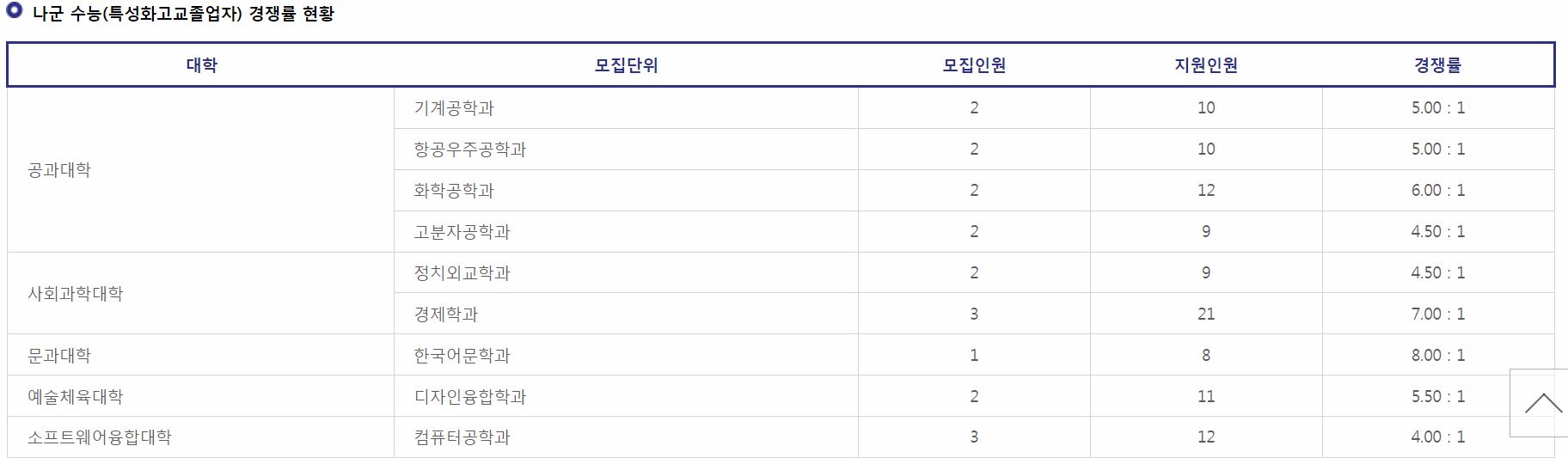 나군 수능(특성화고교졸업자) 경쟁률 현황