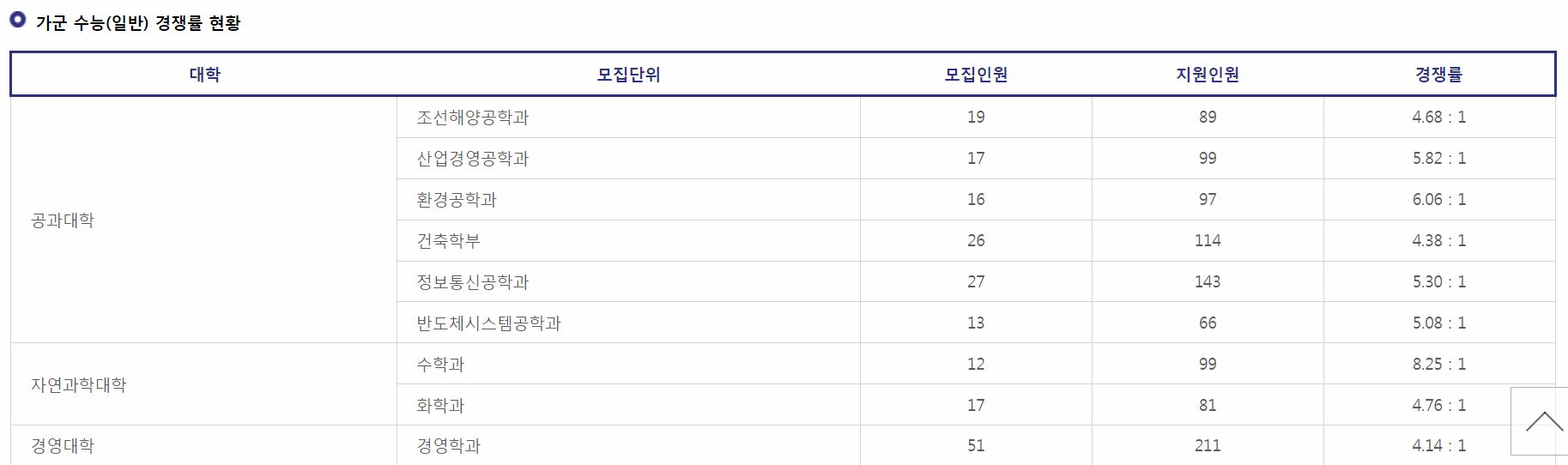 [4년제/광주광역시/전라남도 여수시] 2024학년도 전남대학교 최종 정시 경쟁률 (0) | 2024.02.20 |