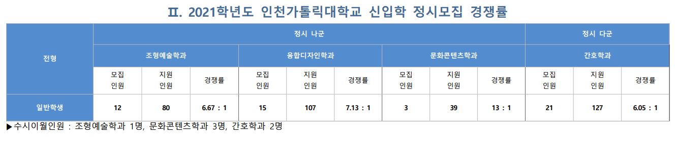 2021학년도 인천가톨릭대학교의 정시 모집 군은 다음과 같았습니다.