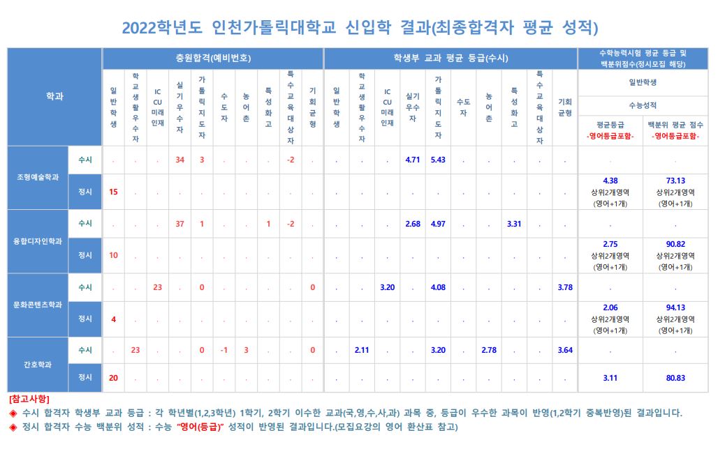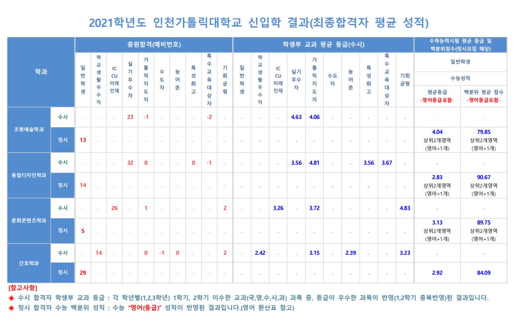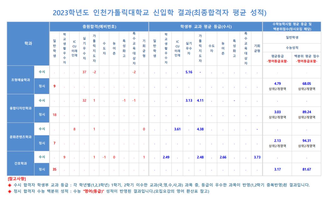오늘은 인천가톨릭대학교의 3개년 정시 등급에 대해 포스팅해보도록 하겠습니다.