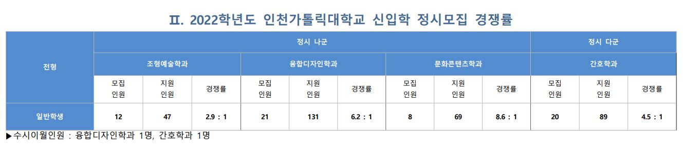 2022학년도 인천가톨릭대학교의 정시 모집 군은 다음과 같았습니다.