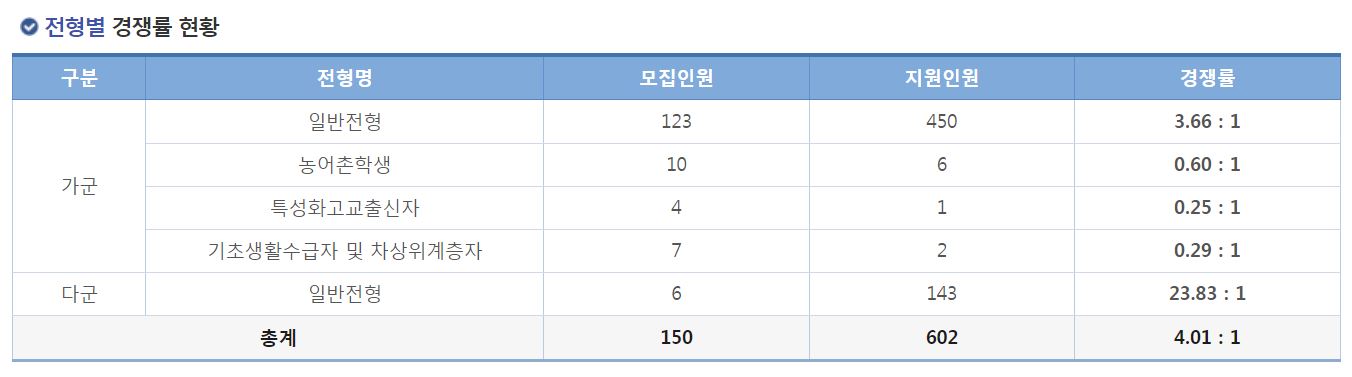 다군 일반전형 경쟁률 현황