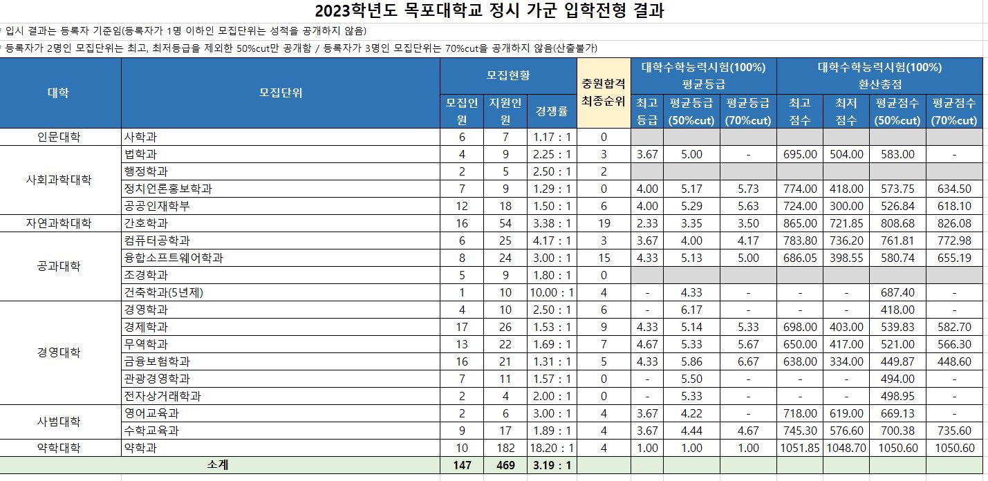 오늘은 목포대학교의 3개년 정시 등급에 대해 포스팅해보도록 하겠습니다.
