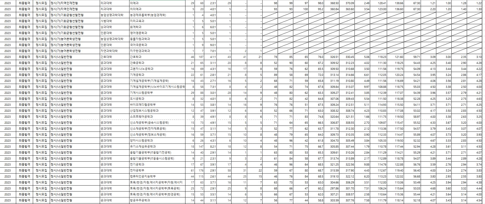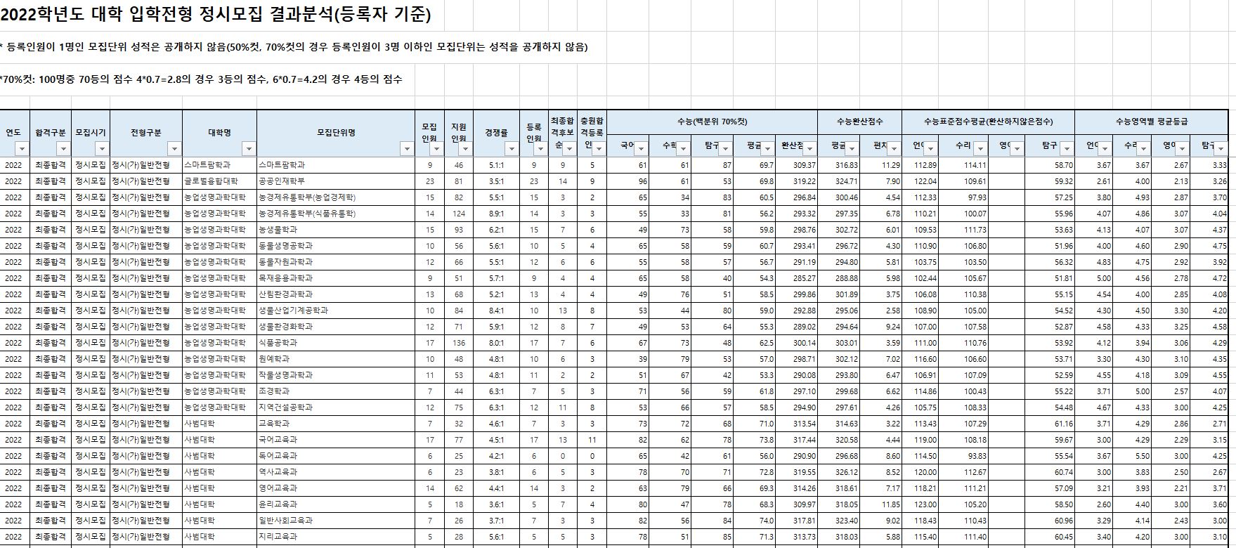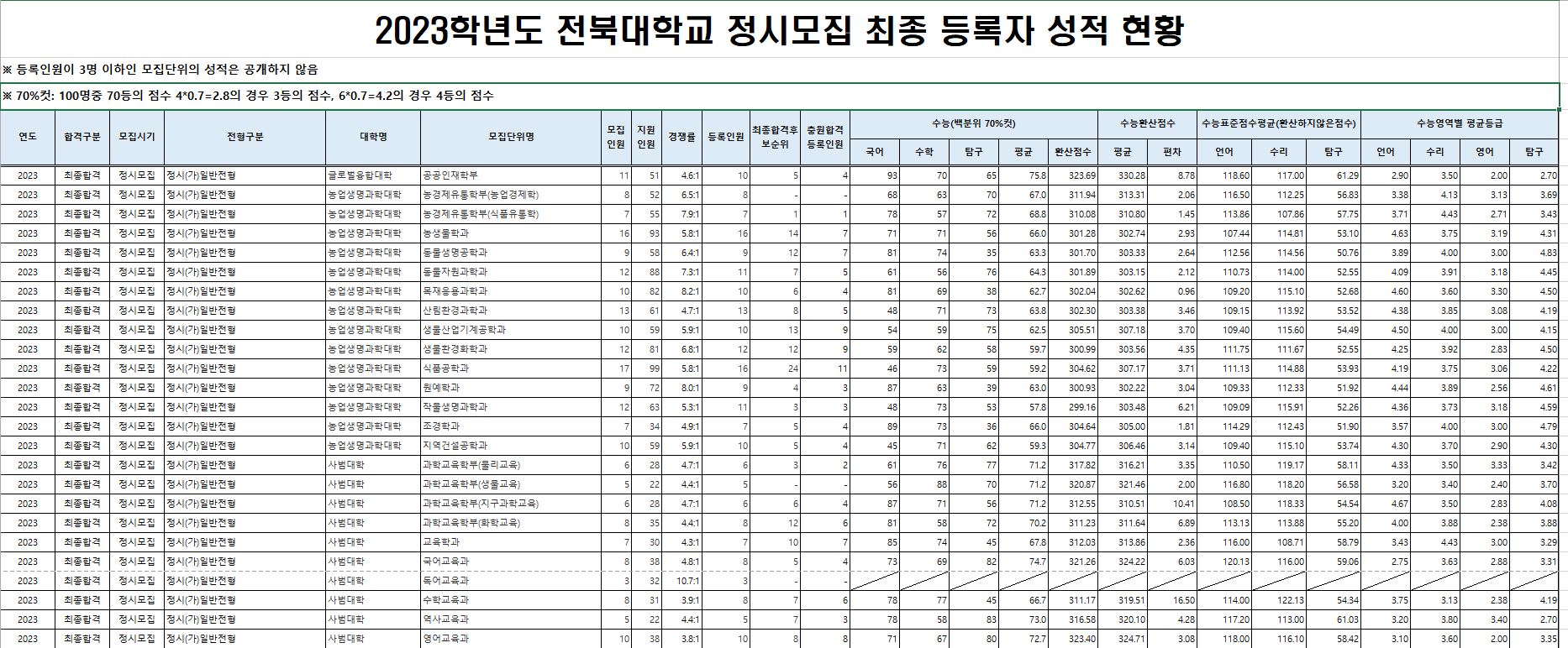 원래는 3개년 정시 등급에 대해 포스팅하지만, 전북대학교에서는 2021학년도 정시 등급을 공개하고 있지 않기에 2022~2023학년도 정시 등급에 대해서만 포스팅하도록 하겠습니다.
