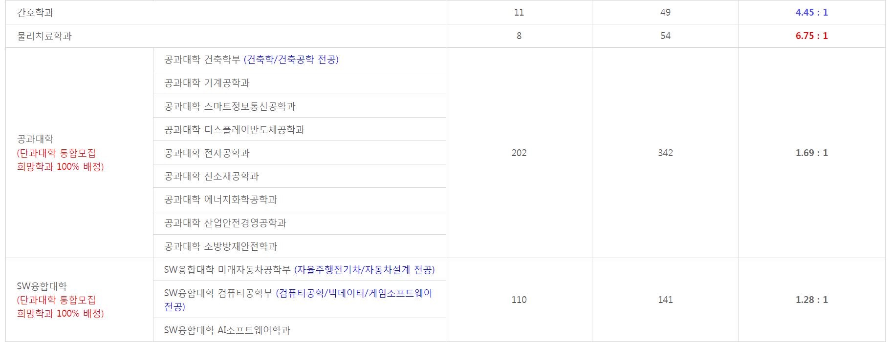 나군 정원외 학생부교과(특성화고교졸업자전형)에서도 학과를 통합하여 학생을 모집했으며, 경쟁률은 2.00:1 이었습니다.