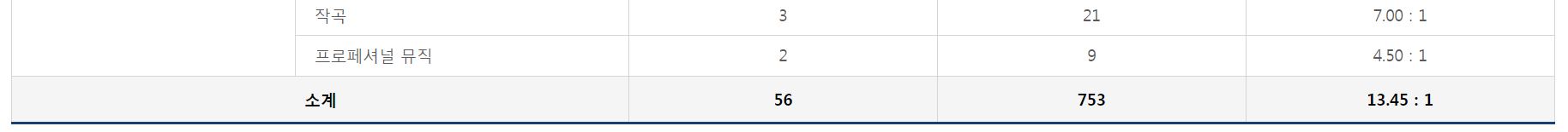 전형별 경쟁률을 살펴보자면, 가장 경쟁률이 높았던 전형은 가군 일반실기(13.45:1), 나군 일반실기(9.94:1), 가군 일반전형(5.58:1) 순이었습니다.