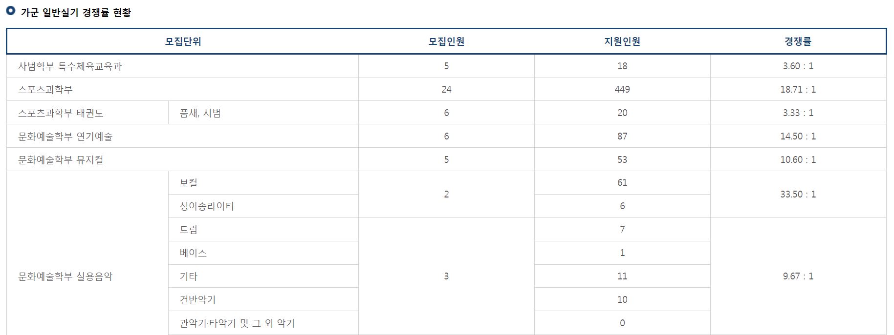 가군 일반실기 경쟁률 현황