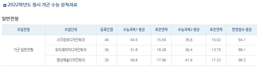 가군 : 시각미디어디자인학과, 공간조형디자인학과, 영상예술디자인학과