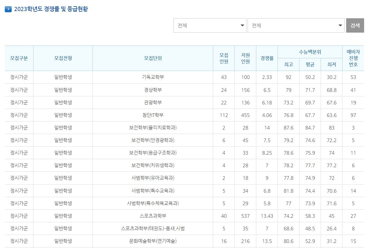 오늘은 백석대학교의 3개년 정시 등급에 대해 포스팅해보도록 하겠습니다.