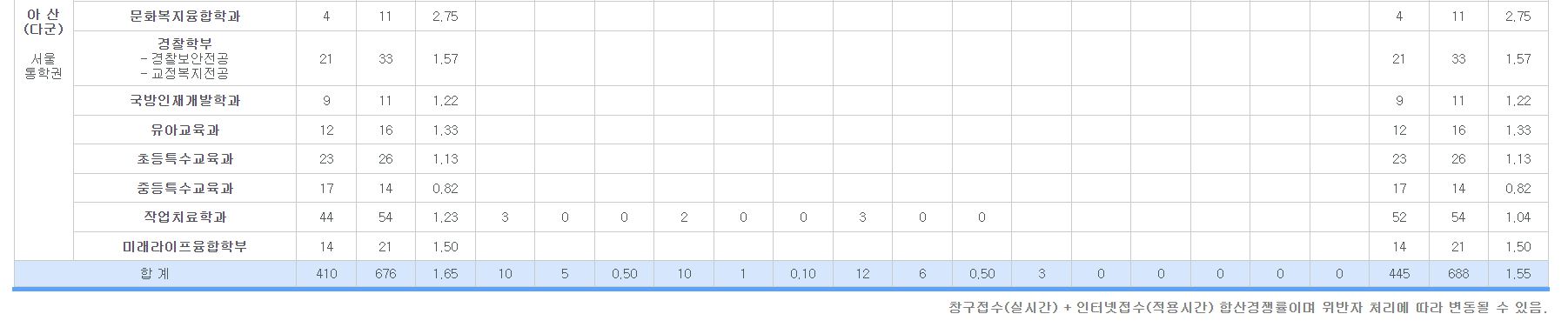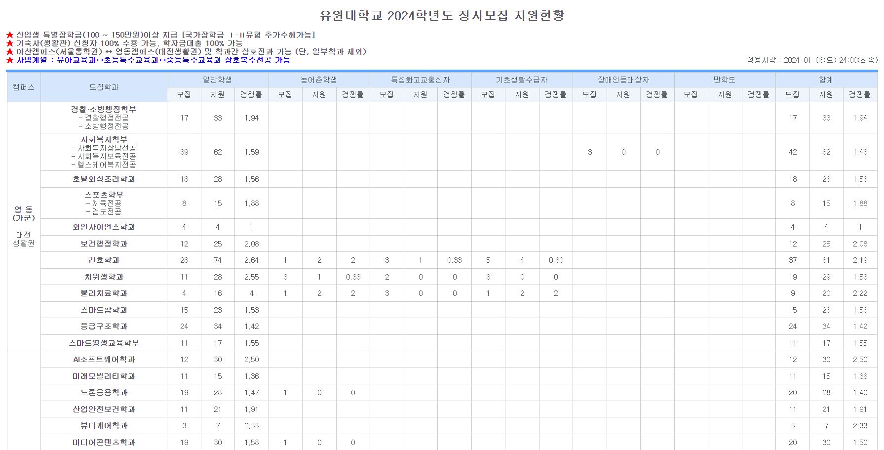 유원대학교는 통합하여 정시 경쟁률을 공개하고 있기 때문에, 따로 정리해 언급하지 않도록 하겠습니다.