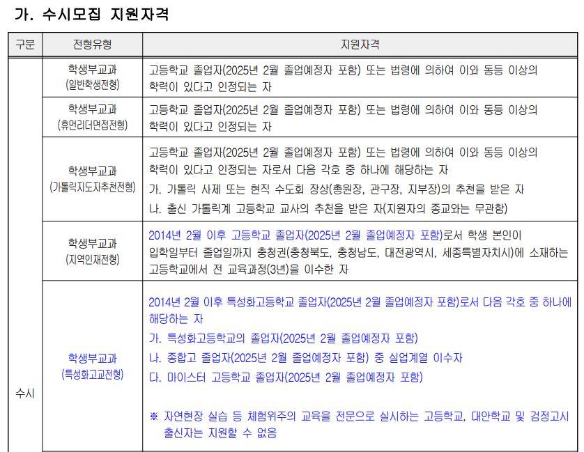 | [4년제/경기도 부천시/서울특별시] 가톨릭대학교 2025학년도 대학입학전형 시행계획 (0) | 2024.03.08 |