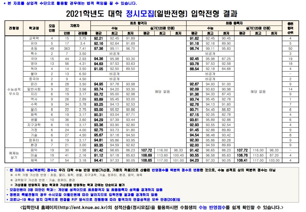 오늘은 한국교원대학교의 3개년 정시 등급에 대해 포스팅해보도록 하겠습니다.