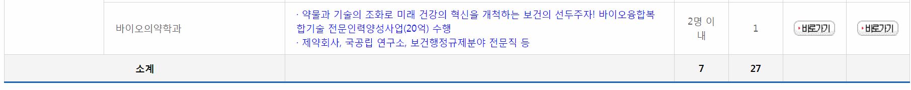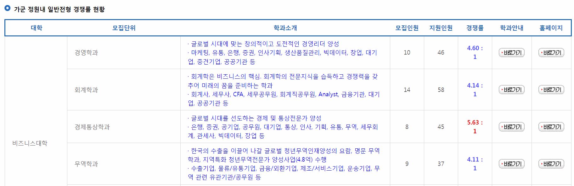 가군 정원외 기회균형전형(정원외) 경쟁률 현황