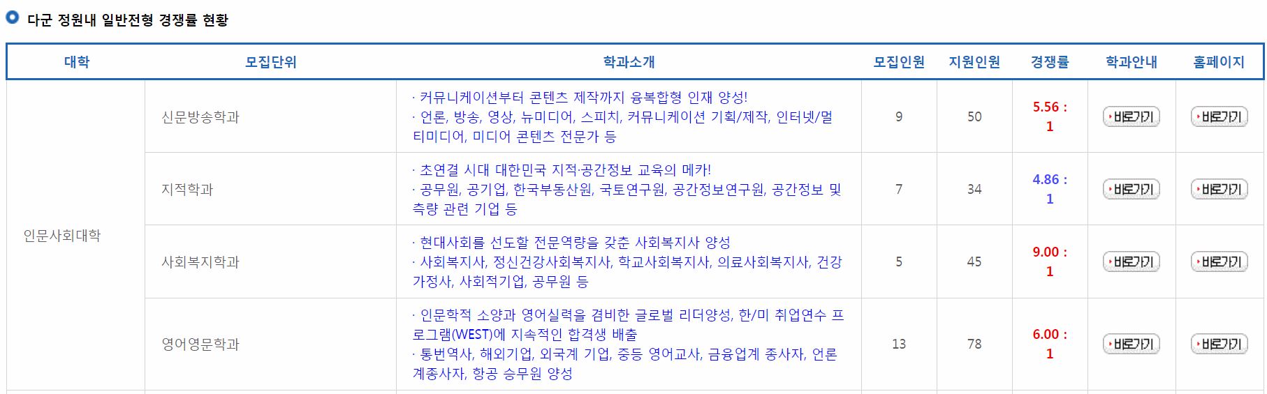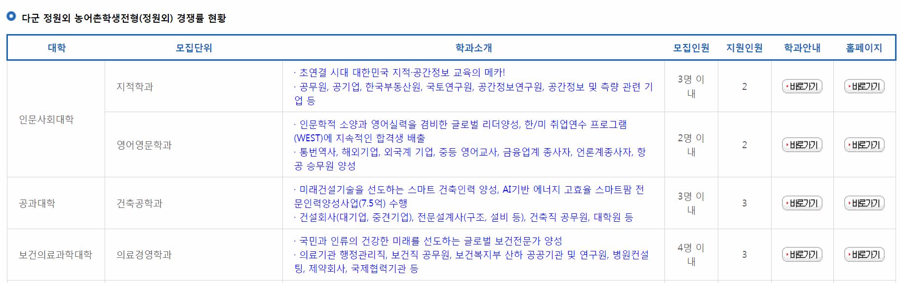 나군 정원외 농어촌학생전형(정원외) 지원 현황은 다음과 같습니다.