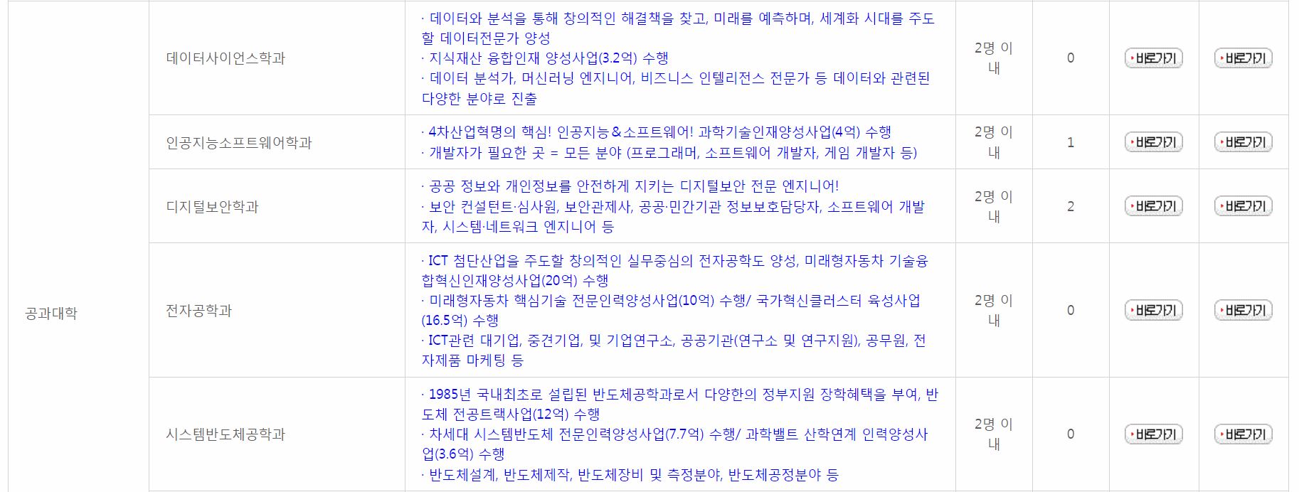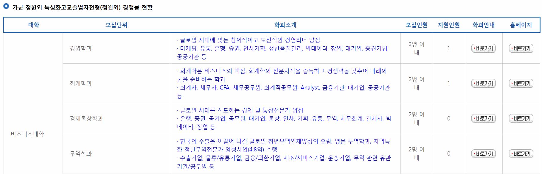 가군 정원외 특성화고교졸업자전형(정원외) 지원 현황은 다음과 같습니다.